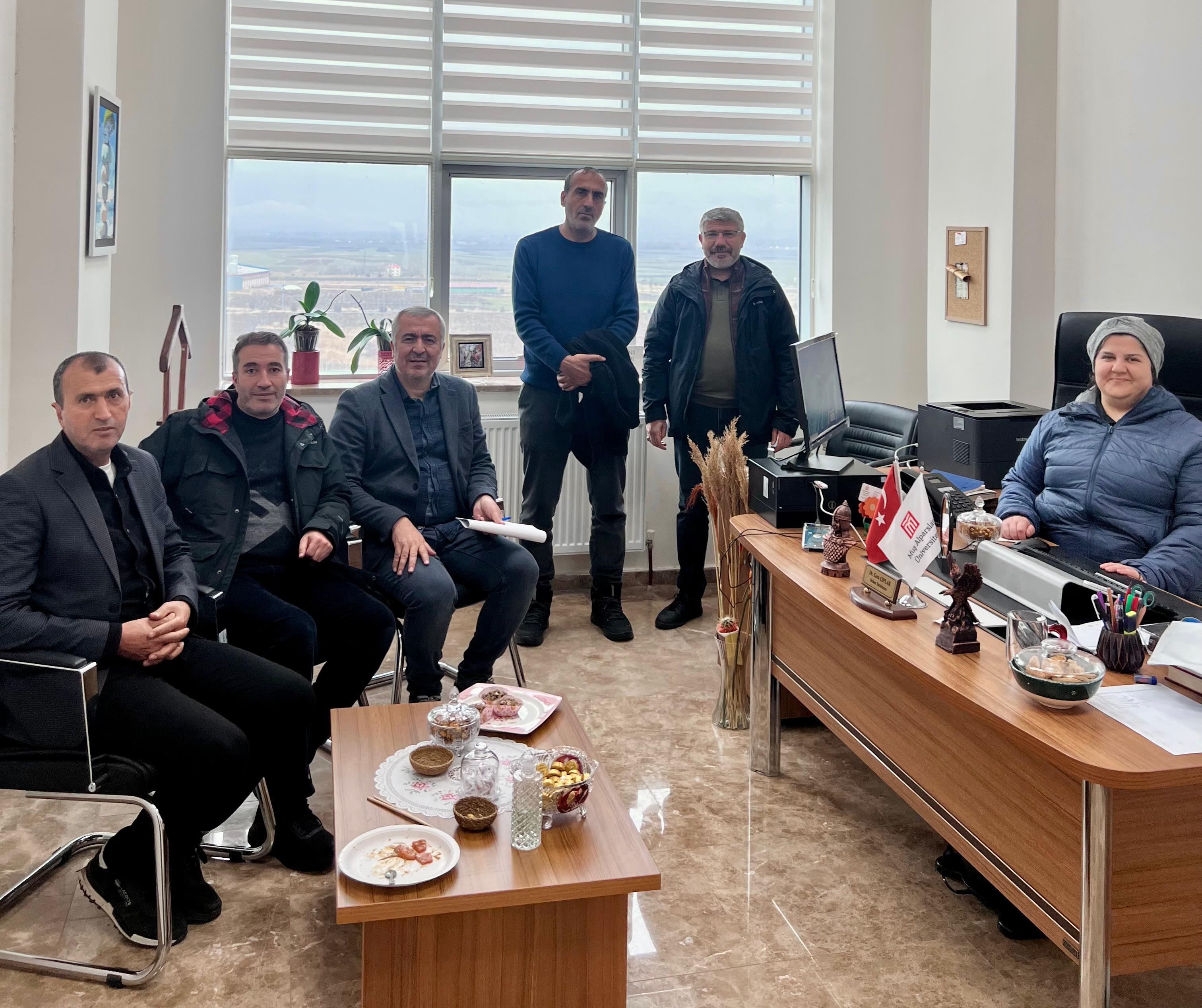 İlk olarak Eğitim Fakültesi Dekanı Prof. Dr. Esin Kaya’yı ve dekan yardımcıları Doç. Dr. Teymur Erol ile Dr. Öğr. Üyesi Veysel Emir Eke’yi ziyaret ederek yeni görevleri için iyi dileklerimizi sunduk. Daha sonra Fen-Edebiyat Fakültesi Dekanı Prof. Dr. Kasım Müminoğlu ile dekan yardımcıları Doç. Dr. Murat Alanoğlu ve Dr. Öğr. Üyesi Esra Çıplak’a makamlarında hayırlı olsun ziyaretinde bulunduk.