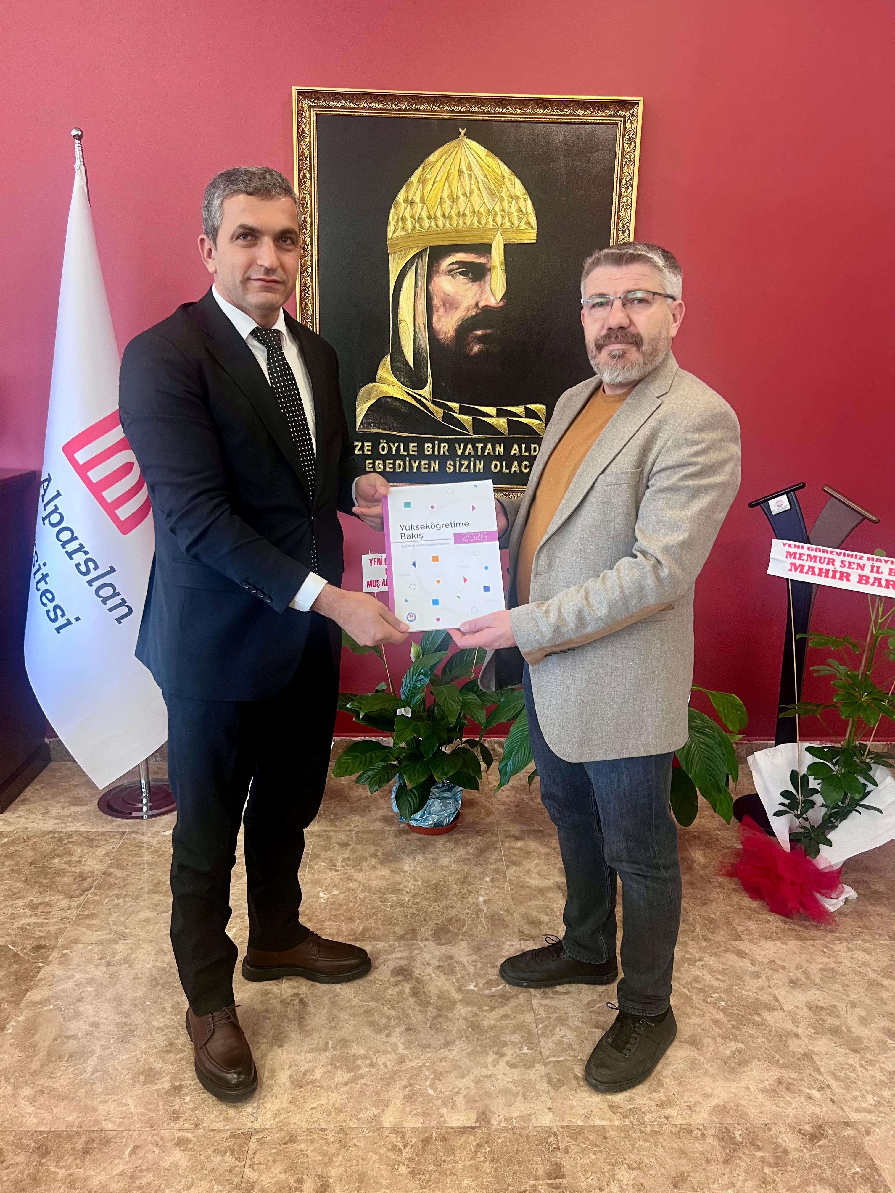 Şube Başkanımız Doç. Dr. Turan Güler ise ziyaret kapsamında Eğitim-Bir-Sen Genel Merkezi tarafından hazırlanan Yükseköğretime Bakış 2025 raporunu Rektör Yardımcısı Sağır’a takdim etti.